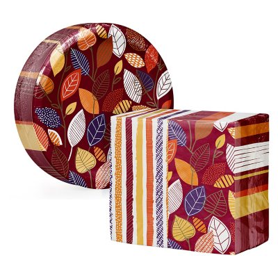 Artstyle Little Leaves Paper Plates And Dinner Napkins Kit 240 Ct Sam S Club